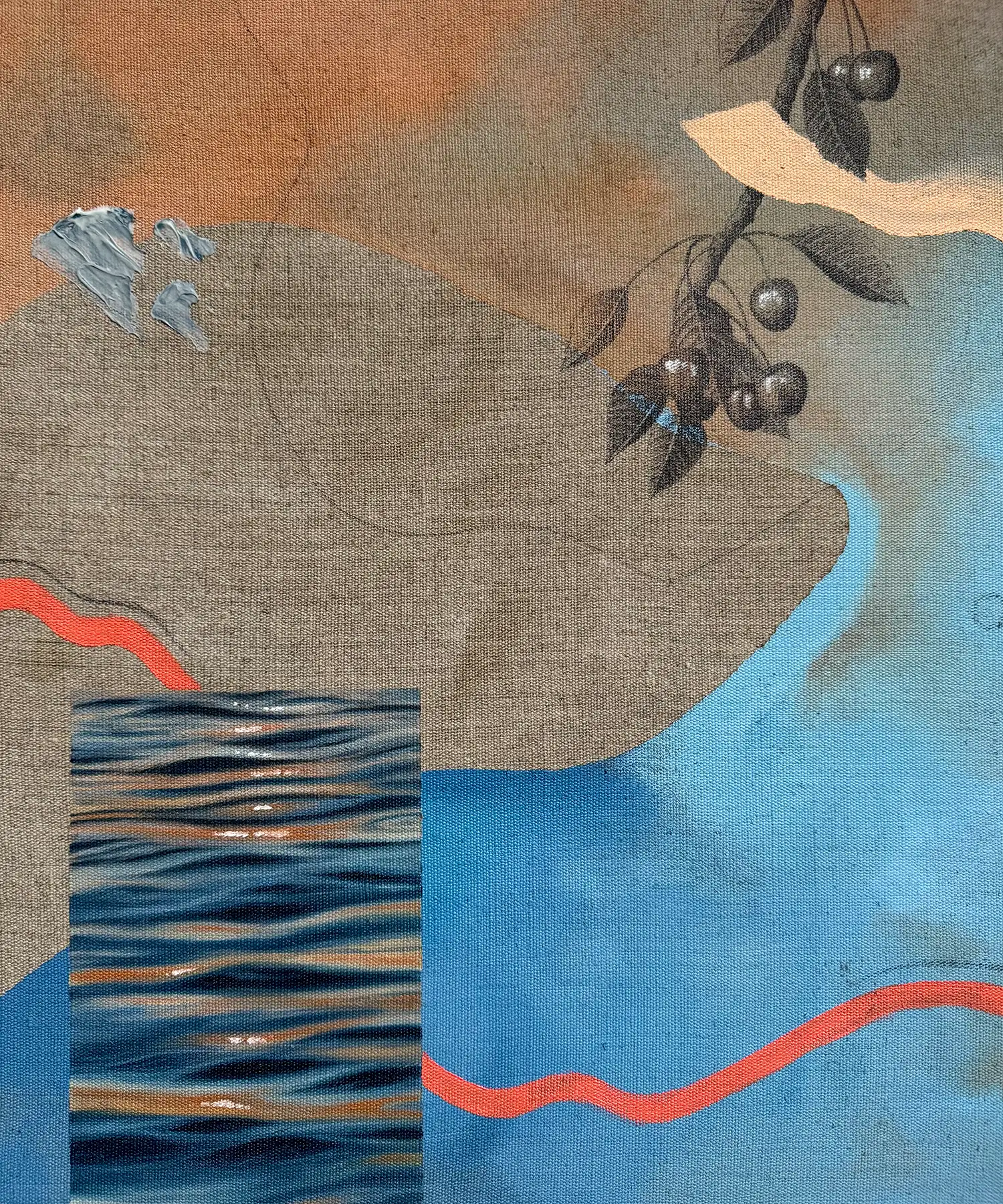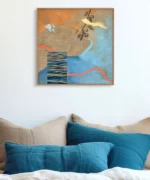 Originální obraz ze série „Rok proměn“. Mixed media na surovém lněném plátně. Kombinace olejových barev, akrylových barev, texturovací pasty, grafitové tužky a markeru.