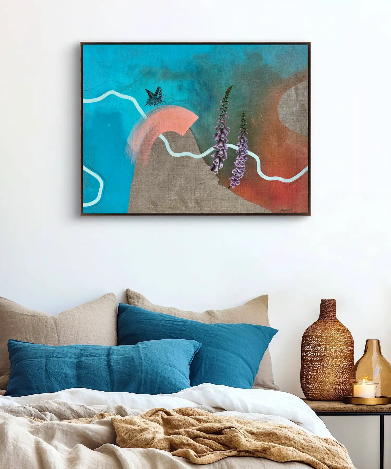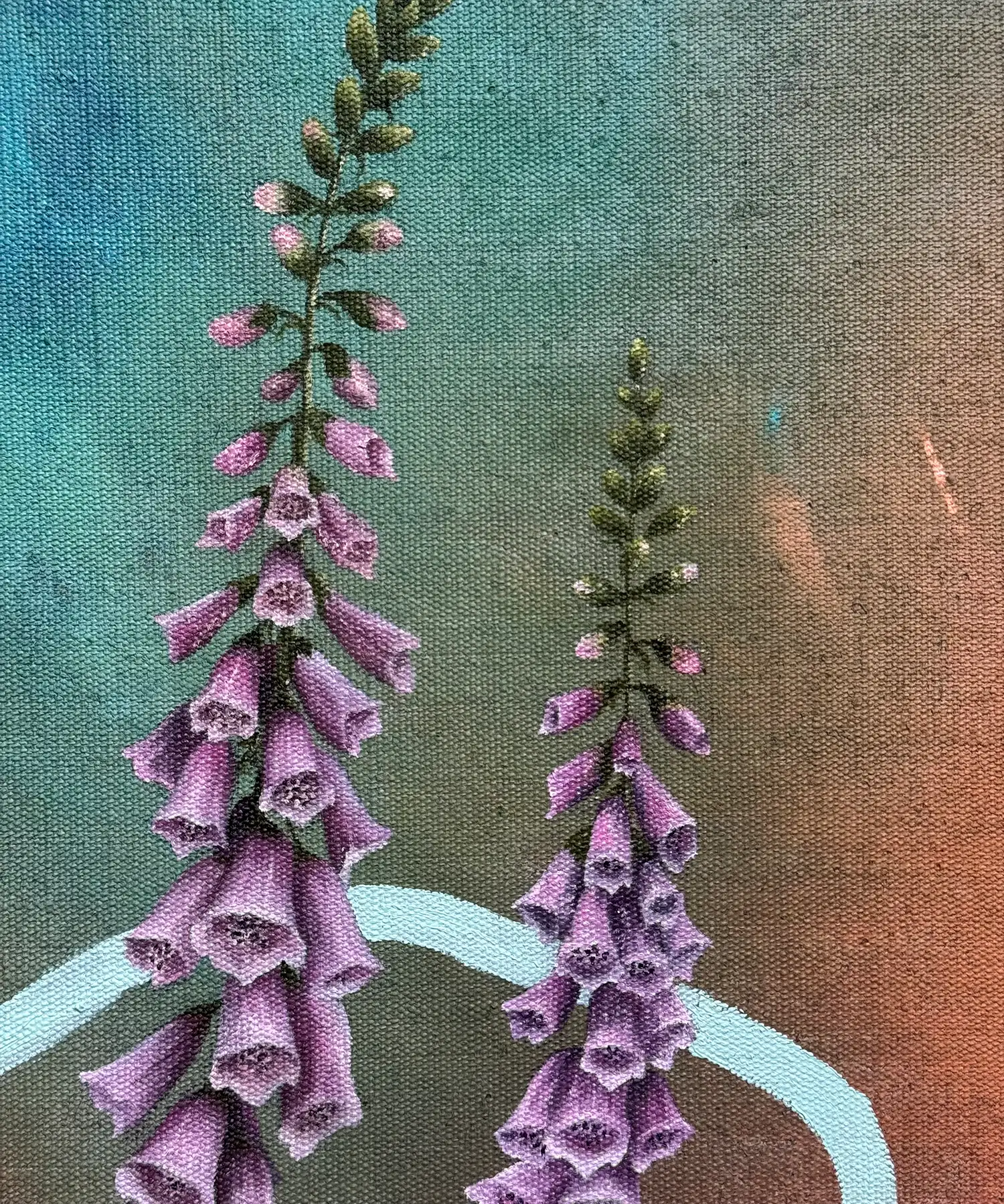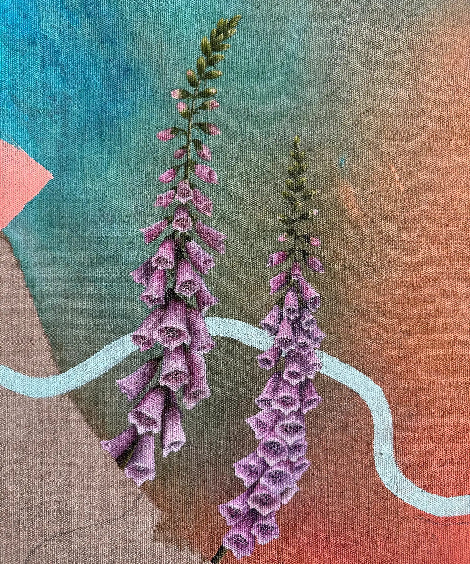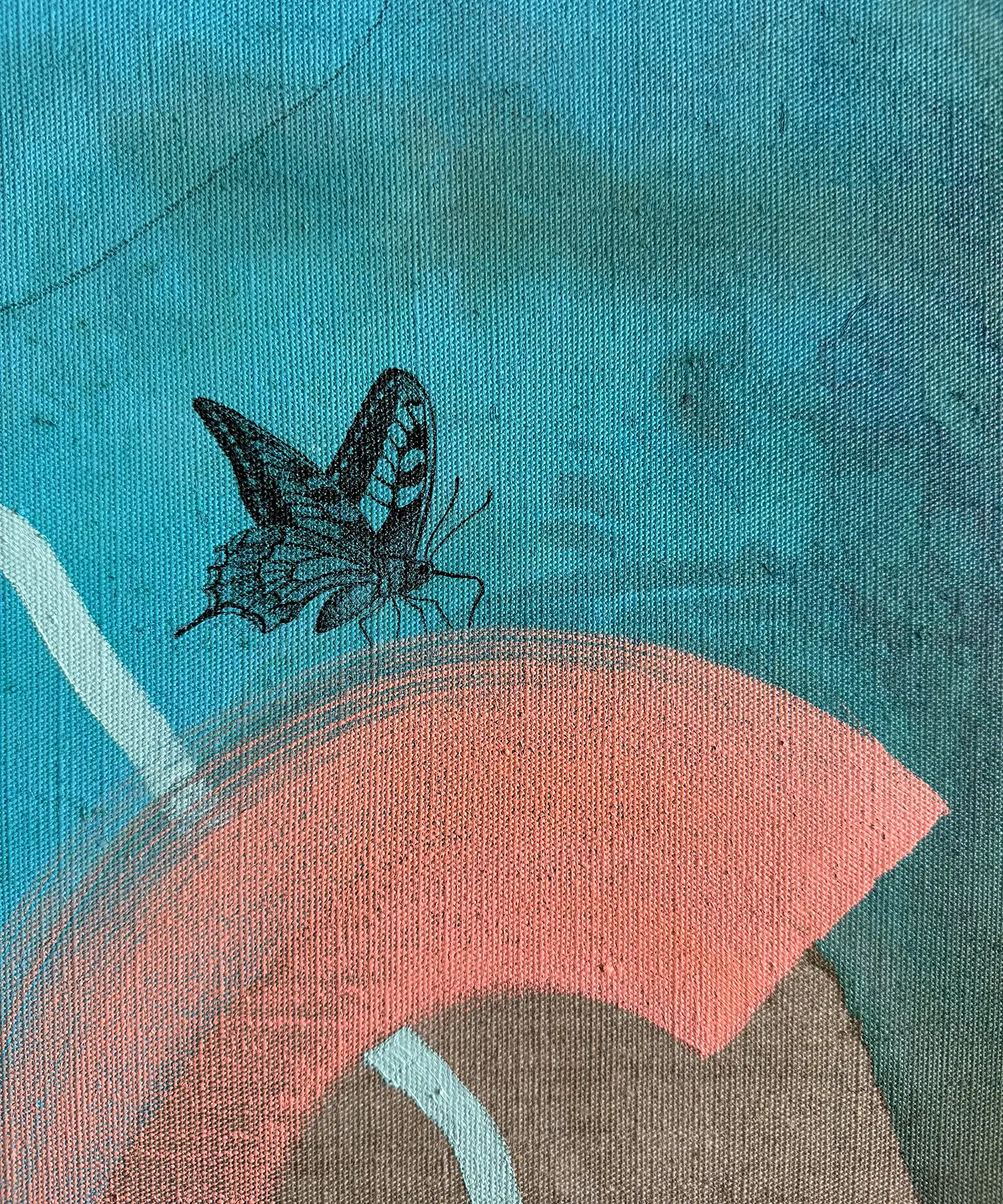 Originální obraz se série „Rok proměn“. Mixed media na surovém lněném plátně. Kombinace olejových barev, akrylových barev, texturovací pasty, grafitové tužky a markeru.