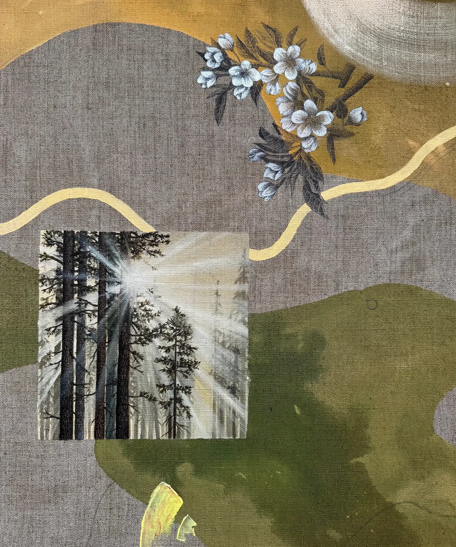 Originální obraz ze série „Rok proměn“. Mixed media na surovém lněném plátně. Kombinace olejových barev, akrylových barev, texturovací pasty, grafitové tužky a markeru.