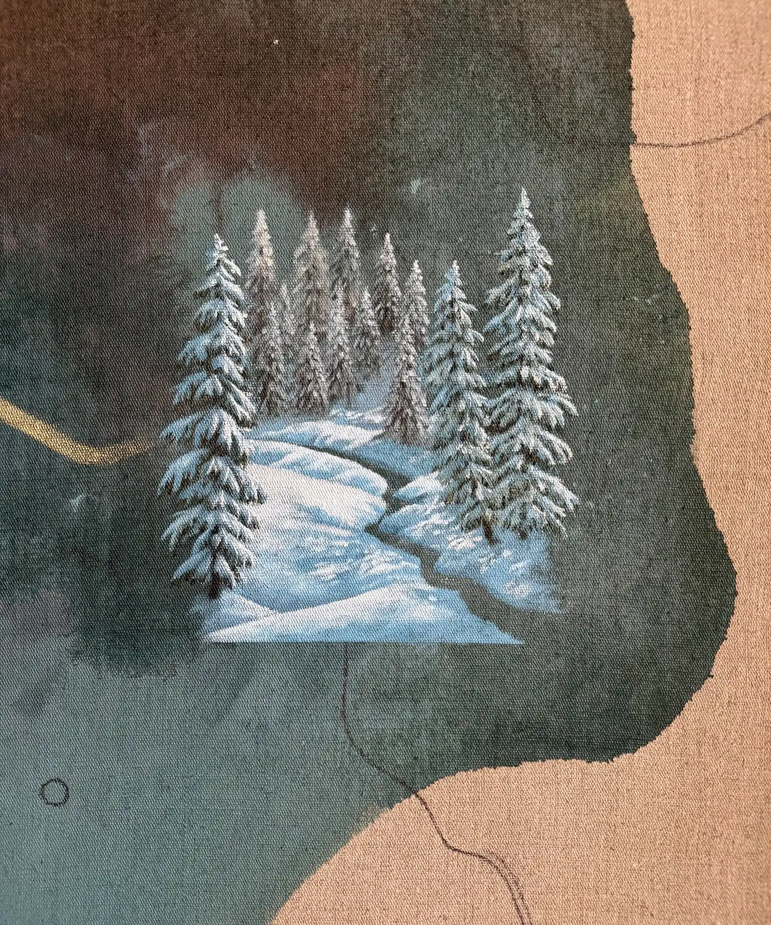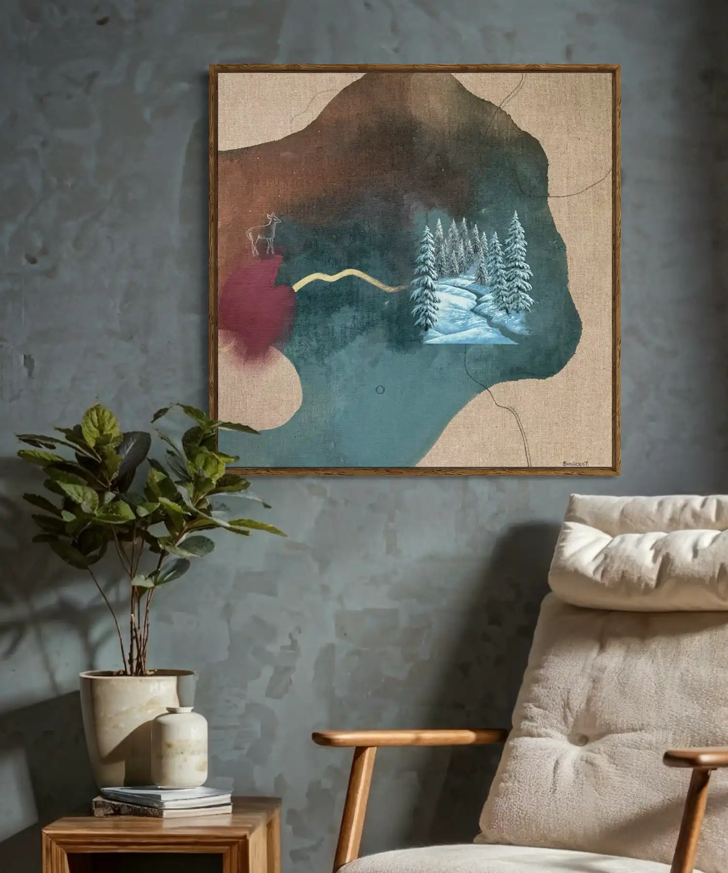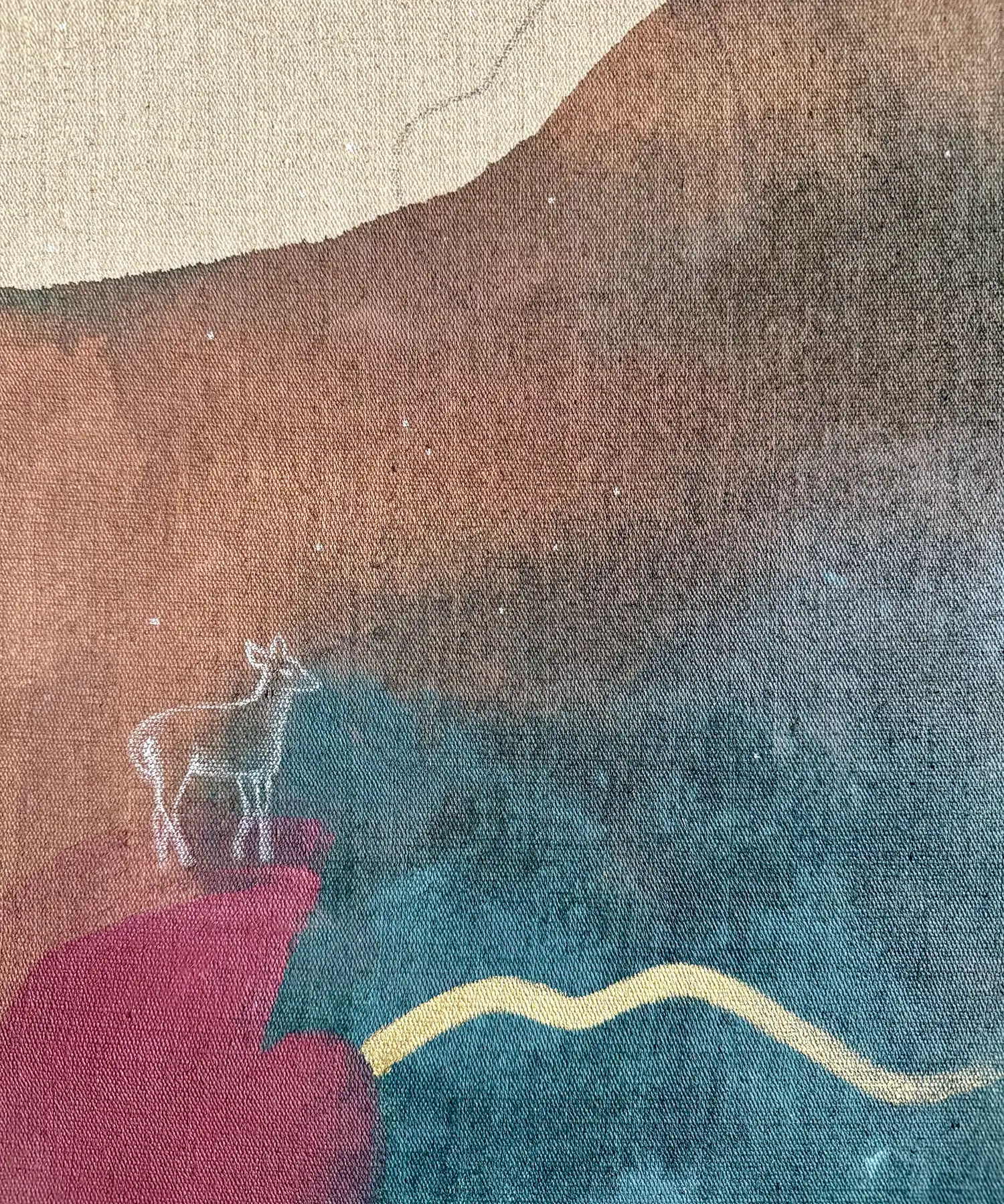 Originální obraz se série „Rok proměn“. Mixed media na surovém lněném plátně. Kombinace olejových barev, akrylových barev, texturovací pasty, grafitové tužky a markeru.