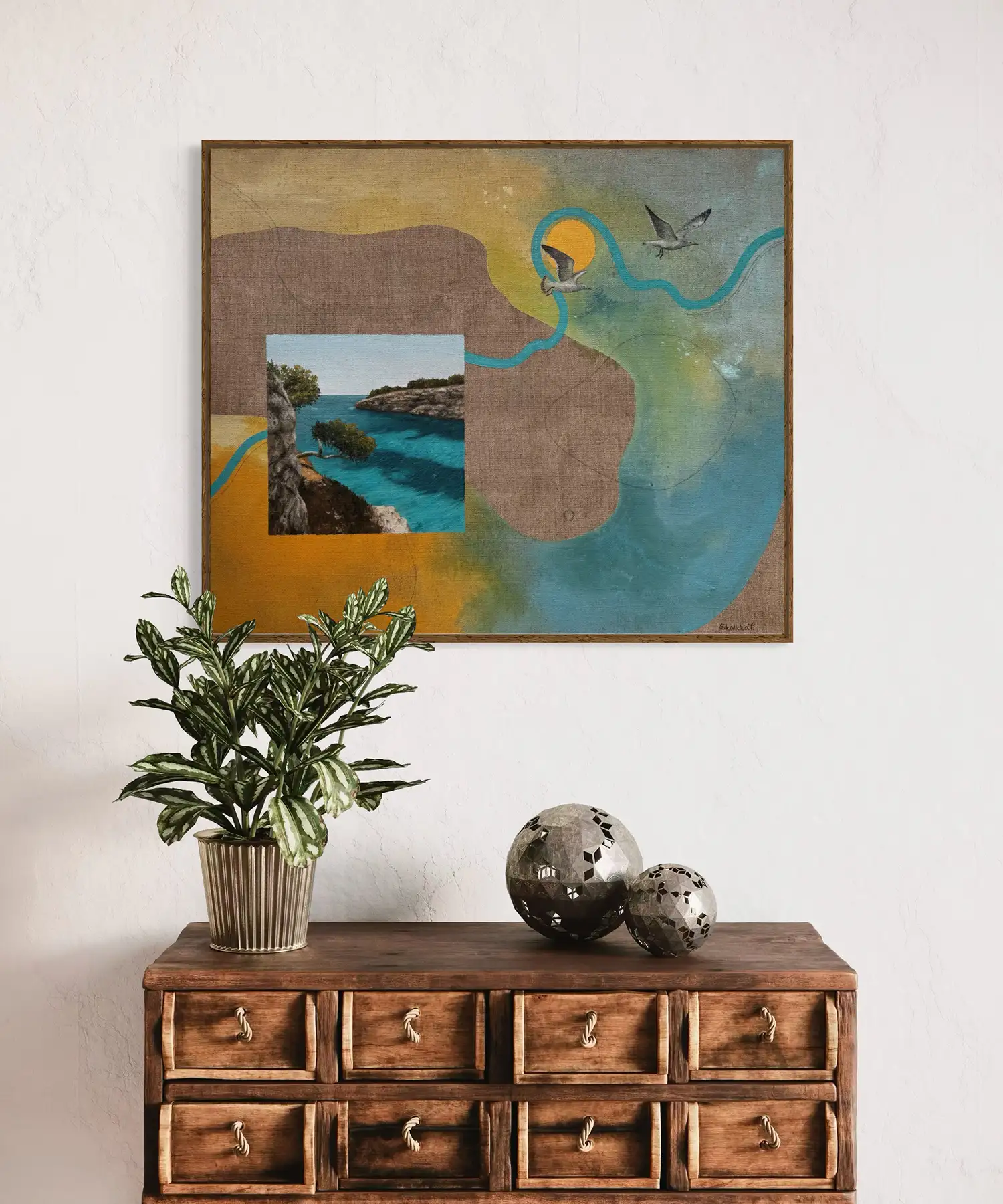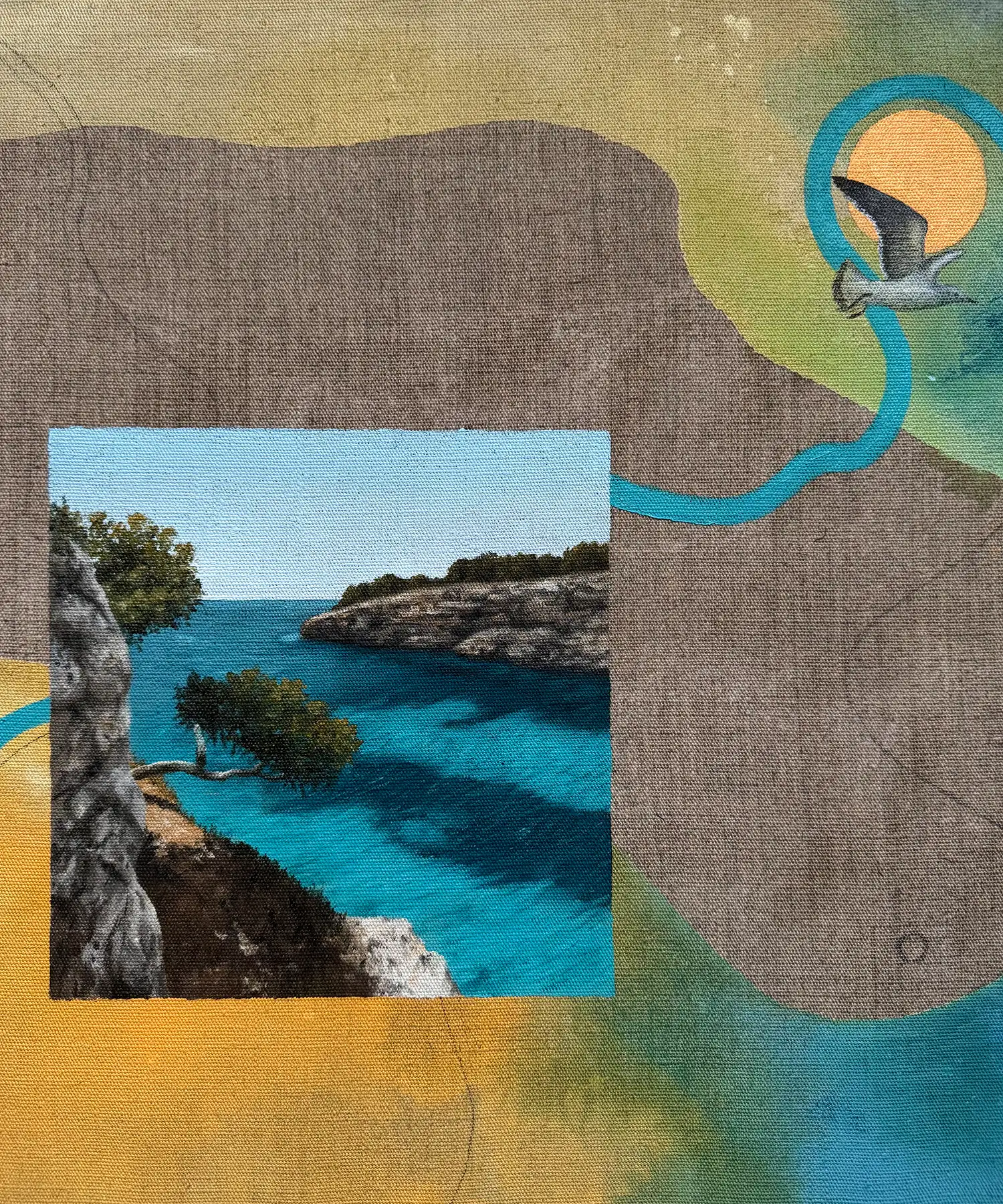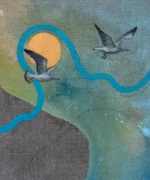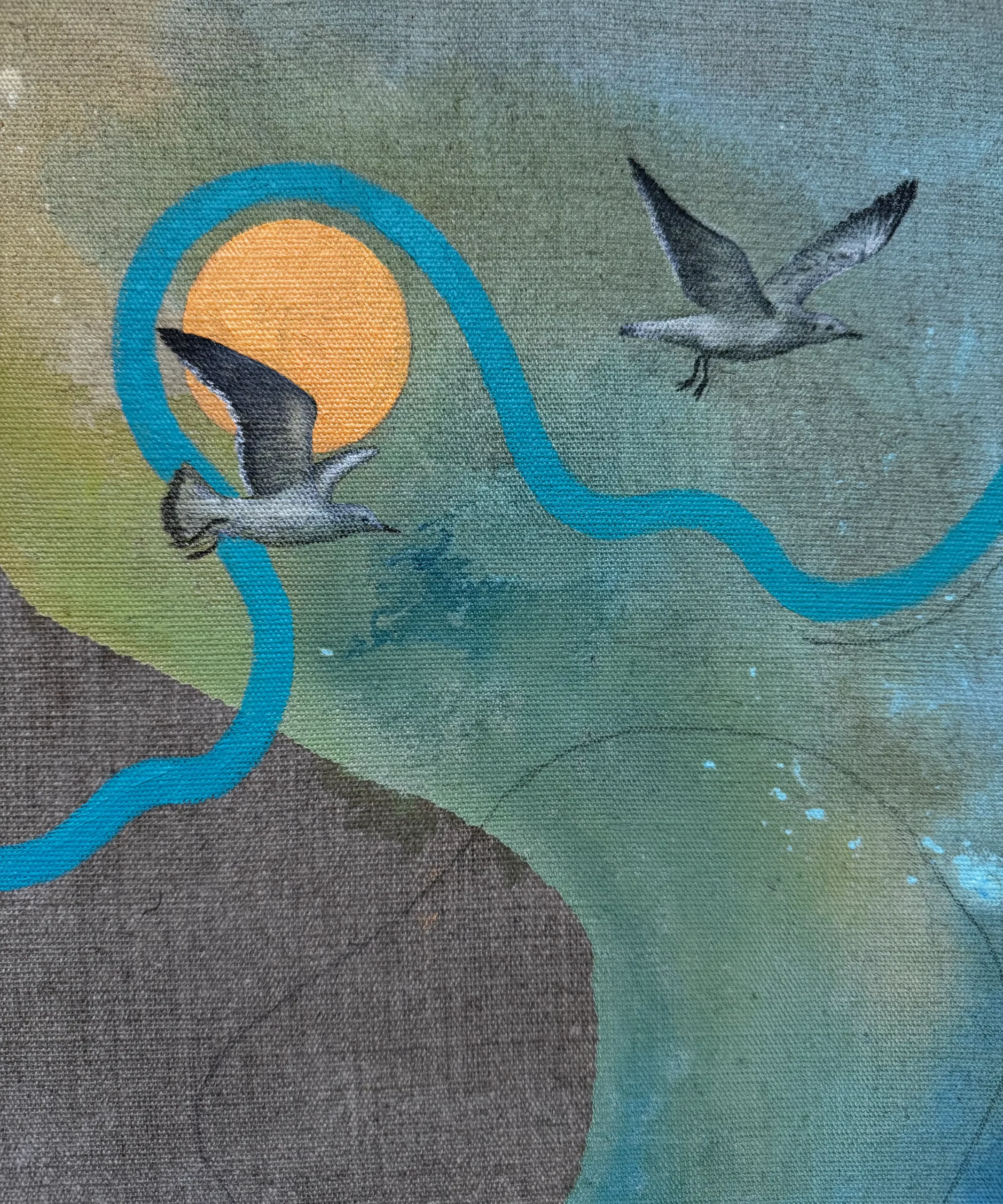 Originální obraz ze série „Rok proměn“. Mixed media na surovém lněném plátně. Kombinace olejových barev, akrylových barev, texturovací pasty, grafitové tužky a markeru.